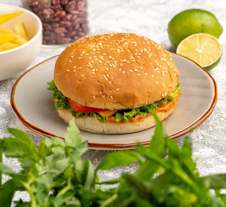 Grass-fed beef, cheddar cheese, lettuce, tomato,